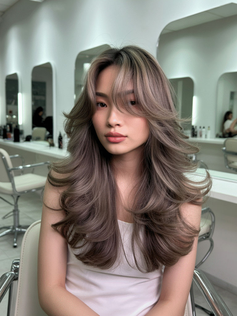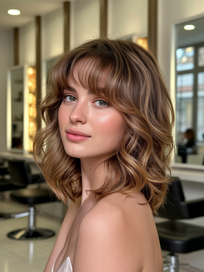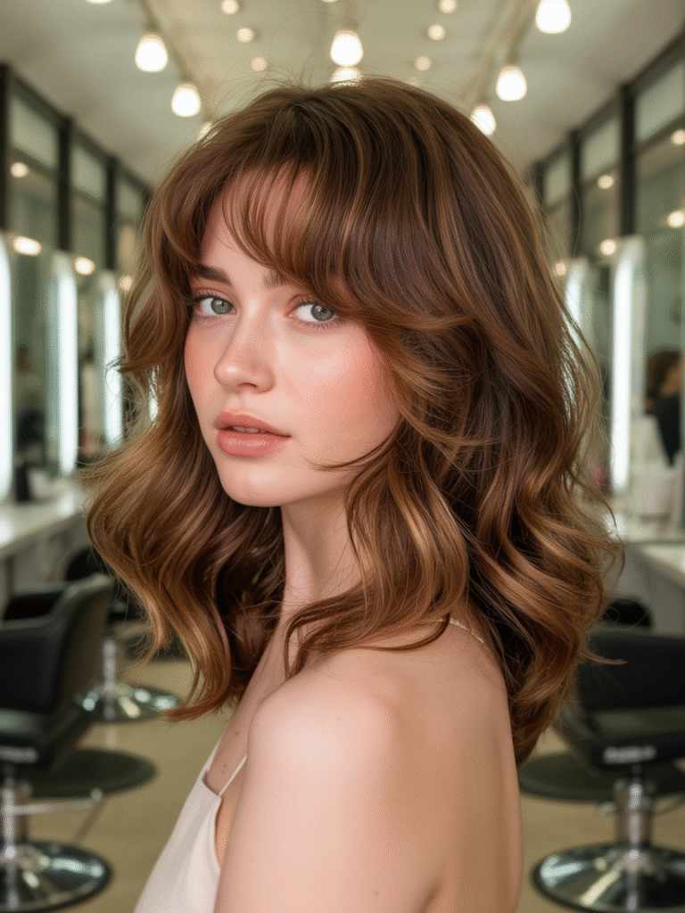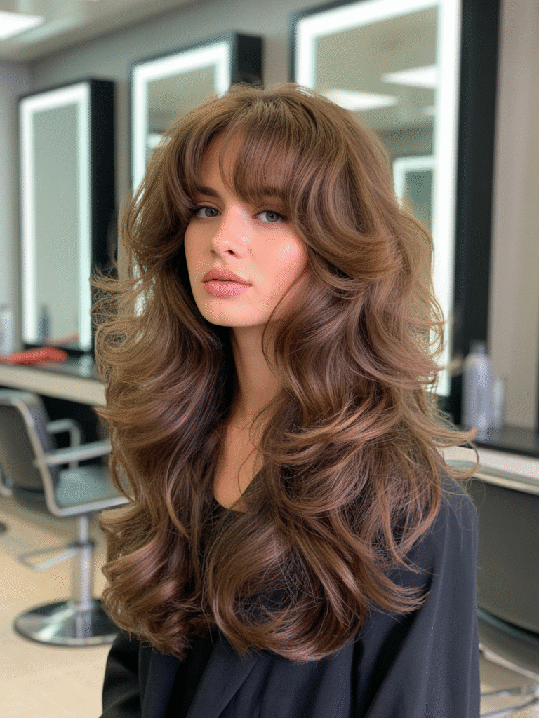 As franjas não são mais pesadas – em 2026, as wispy bangs reinam com fios finos e esvoaçantes que emolduram o rosto como uma cortina de seda. Esse detalhe transforma qualquer corte, do bob ao longo repicado, e é ótimo para suavizar traços angulares. Dica pro: use em cabelos cacheados para um ar boho moderno.