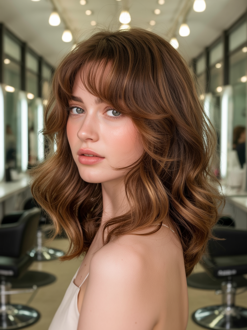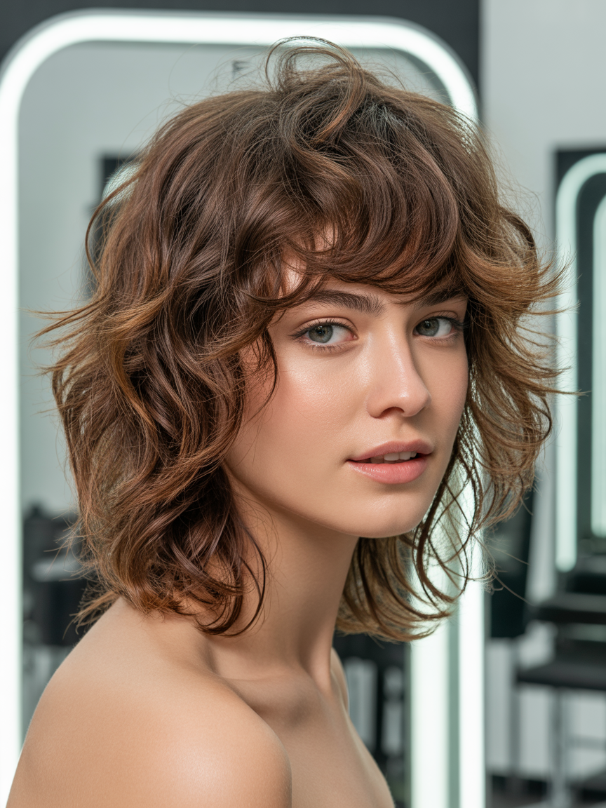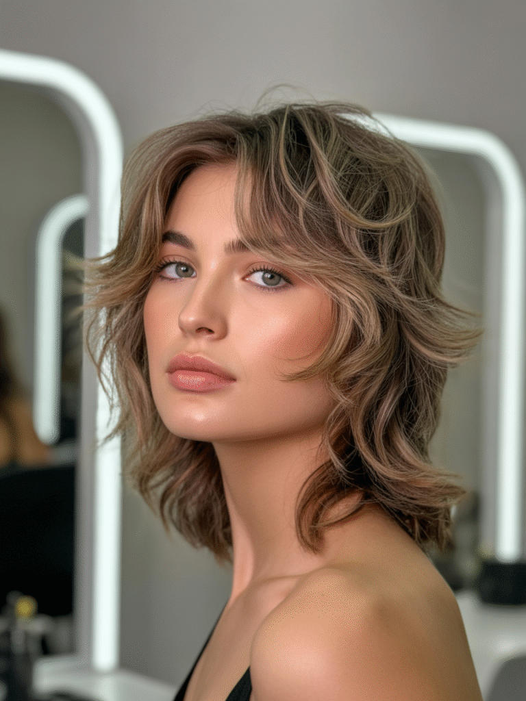 Inspirado nos anos 70, mas atualizado, o soft shaggy traz camadas suaves que adicionam volume sem frizz. É o corte ideal para cabelos finos, criando ilusão de densidade. Combine com cores quentes como castanho mel para um glow natural que grita “2026”.