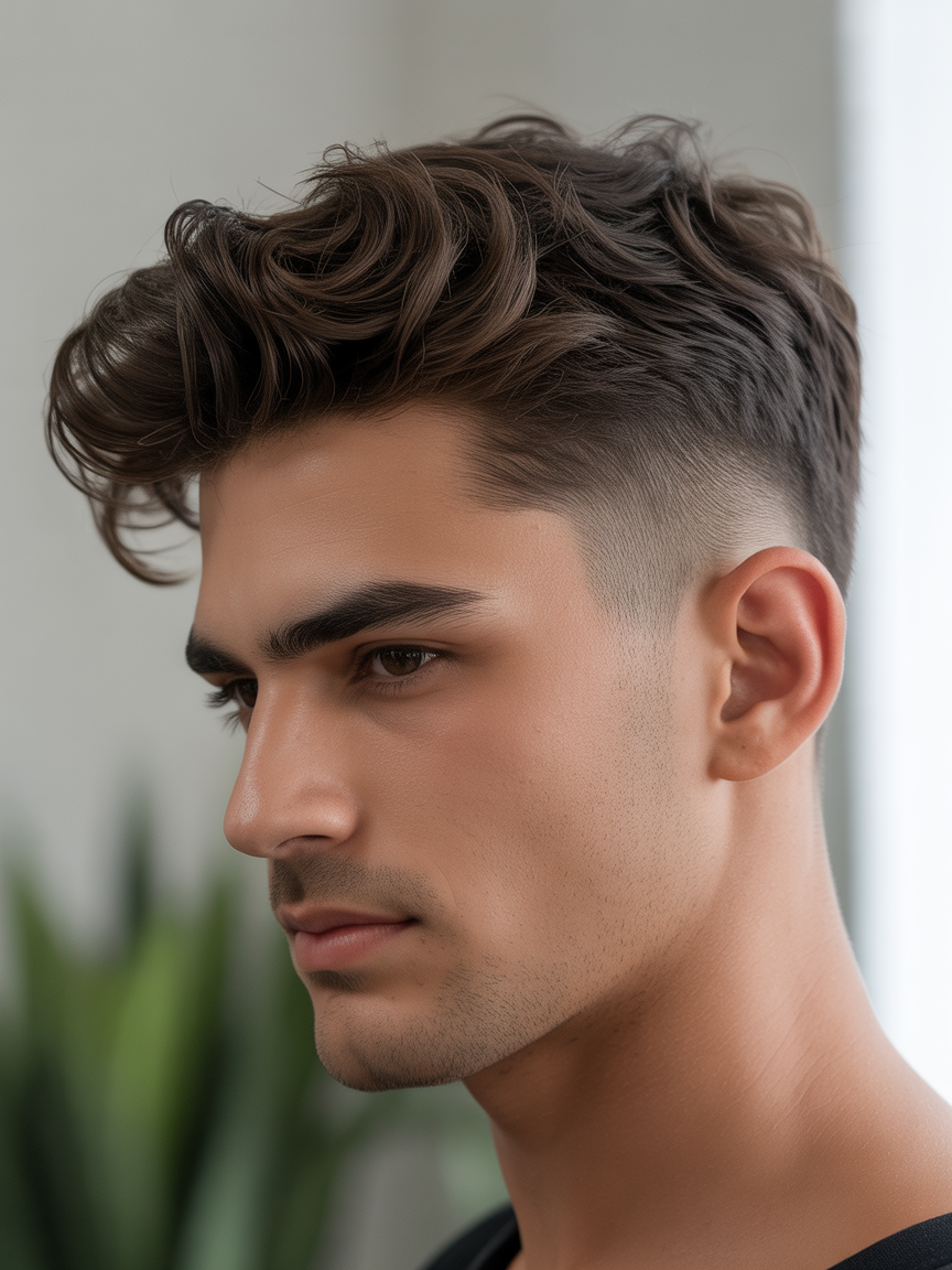 O textured crop foca em topes bagunçados com fades baixos, perfeito para o dia a dia agitado. Essa tendência valoriza a naturalidade masculina e é versátil para todos os ângulos de rosto.